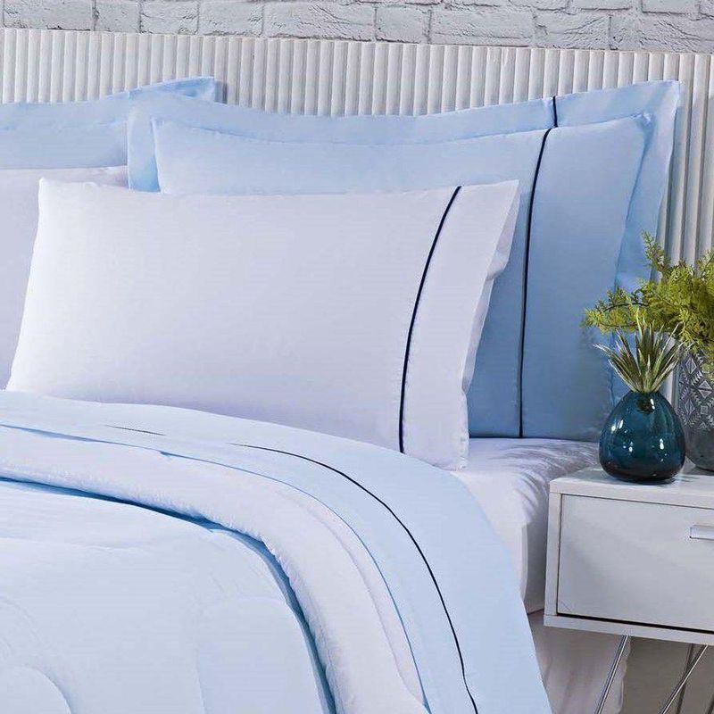 Edredom 100% Algodão Percal 150 Fios Dupla Face Casal Gran Moratta 1 Peça - Azul/branco