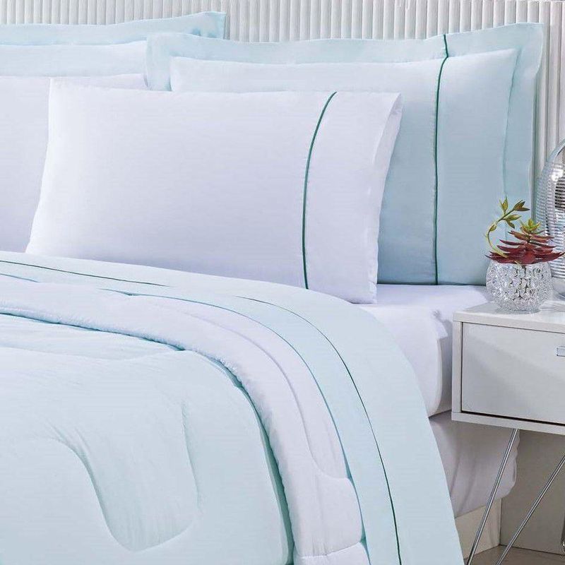 Edredom 100% Algodão Percal 150 Fios Dupla Face Solteiro Gran Moratta 1 Peça - Verde/branco