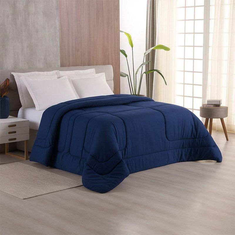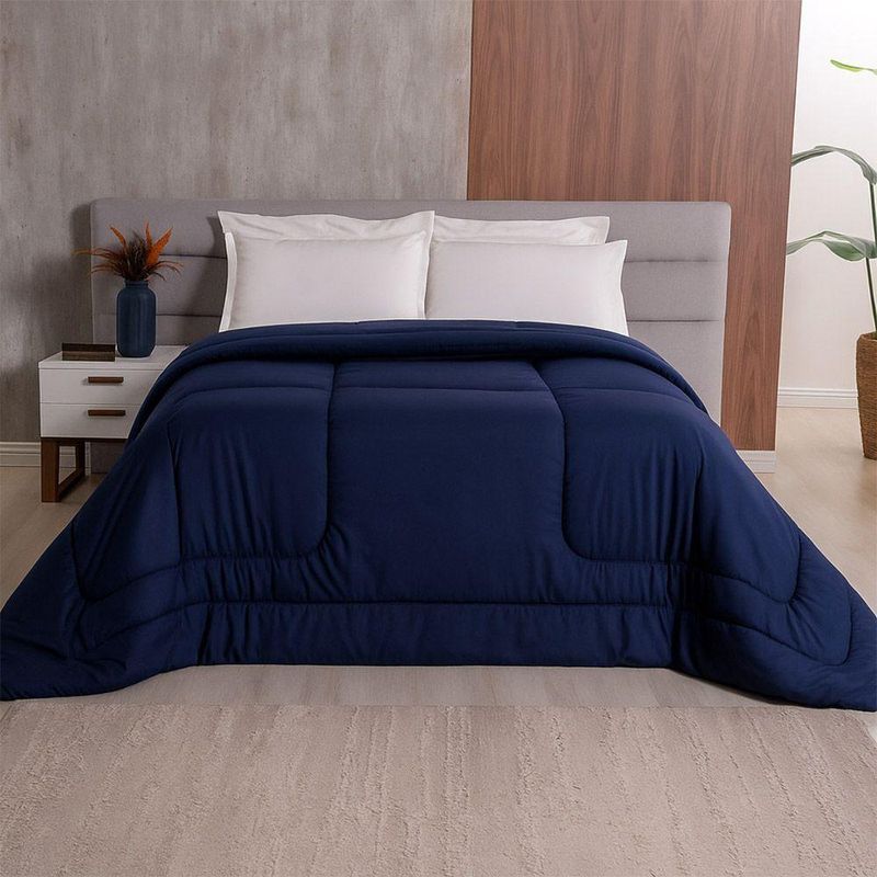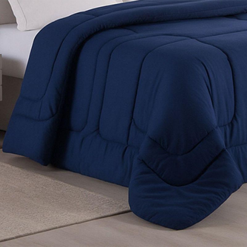 Edredom Bali Liso Queen 01 Peça Micropercal Dupla Face 400 Fios Macio - Azul Marinho - 100% Poliéster