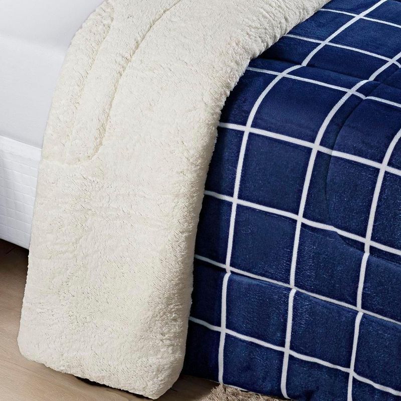 Edredom Casal Padrão Coberdrom Sherpa/mantinha Austin 1 Peça - Marinho