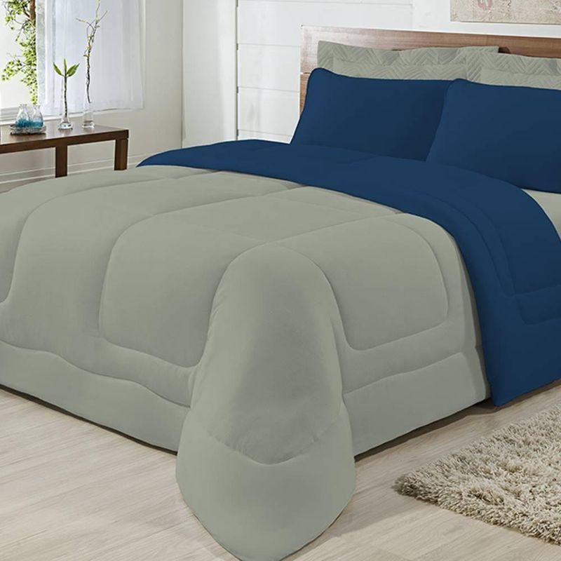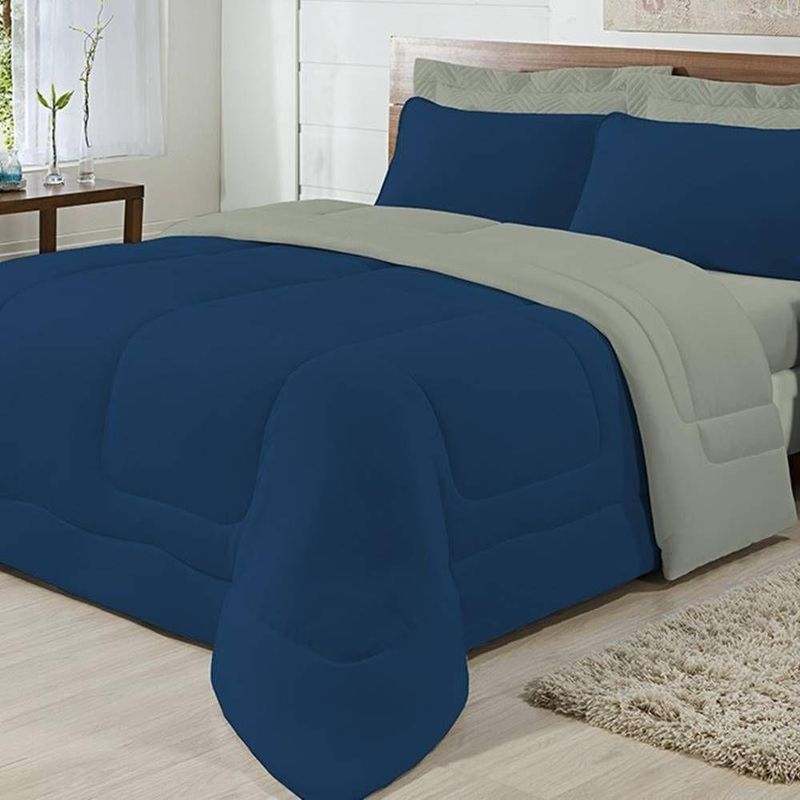 Enchimento 100% Poliéster (120 Gramas) Marca: Enxovais Davy | Estampa: Não se Aplica | Medidas: 01 Edredom Casal Liso 2,00m x 2,20m | Número de Peças: Avulsa | Material: Agodão | Cor Predominante: Marinho/ Cinza | Cama Indicada: Casal