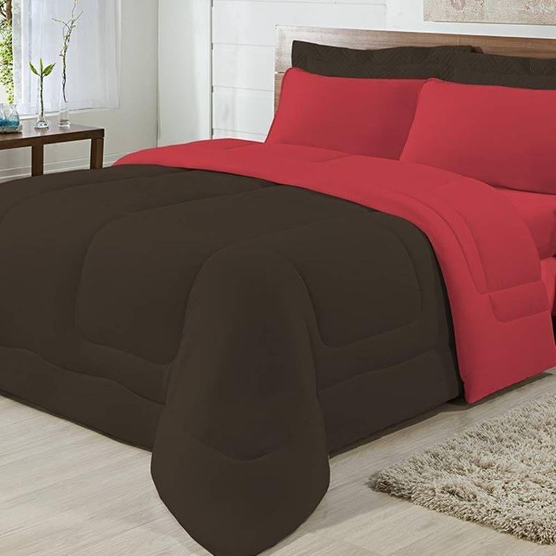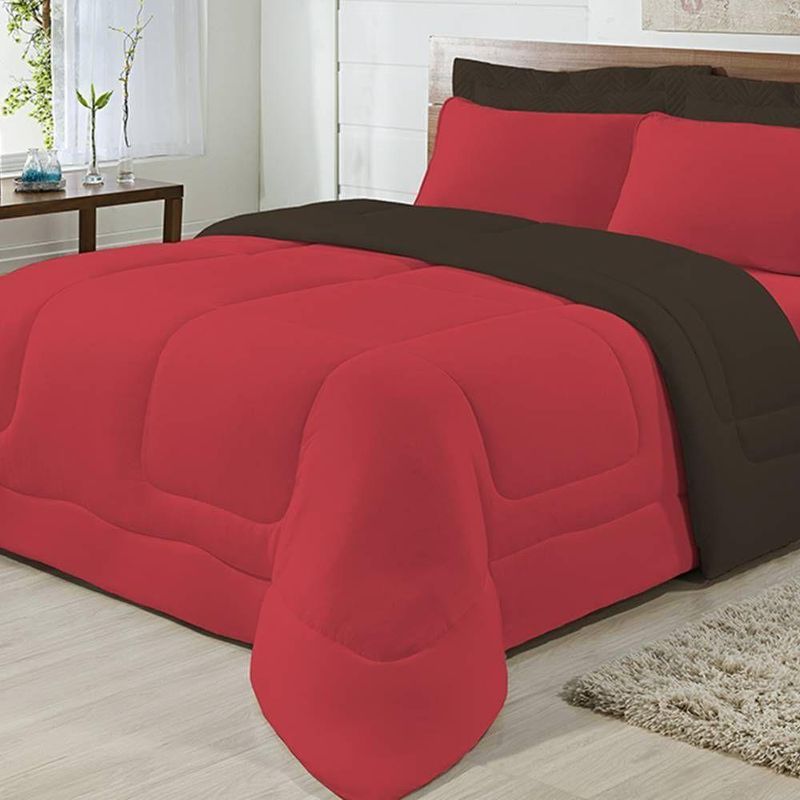Edredom Dupla Face 100% Algodão Malha King Gran Moratta 01 Peça - Marrom/ Vermelho