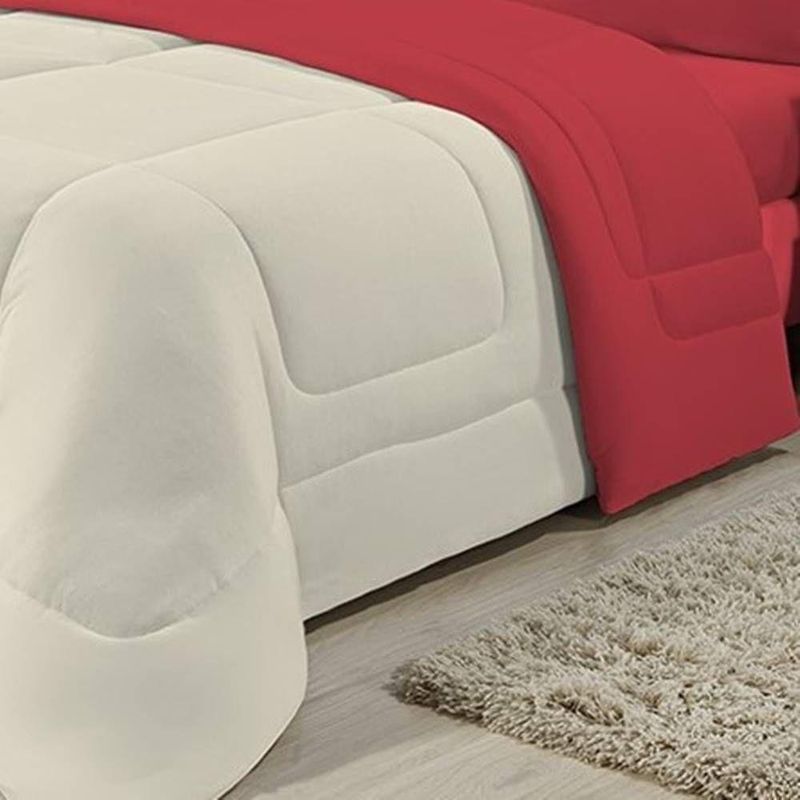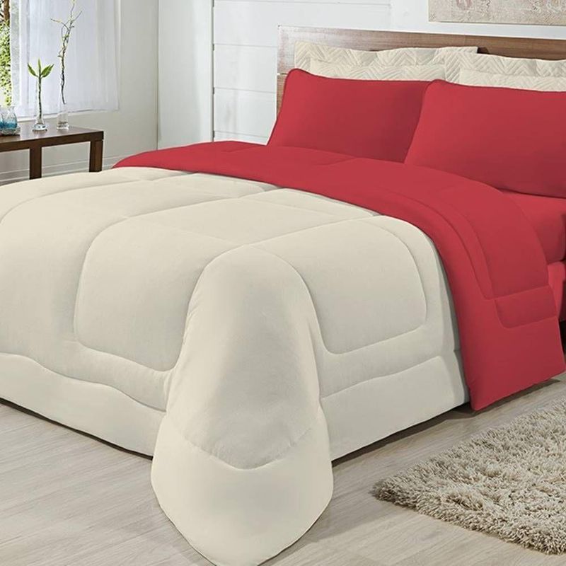 Enchimento 100% Poliéster (120 Gramas) Marca: Enxovais Davy | Estampa: Não se Aplica | Medidas: 01 Edredom King Liso 2,50m x 2,90m | Número de Peças: Avulsa | Material: Agodão | Cor Predominante: Palha/ Vermelho | Cama Indicada: King
