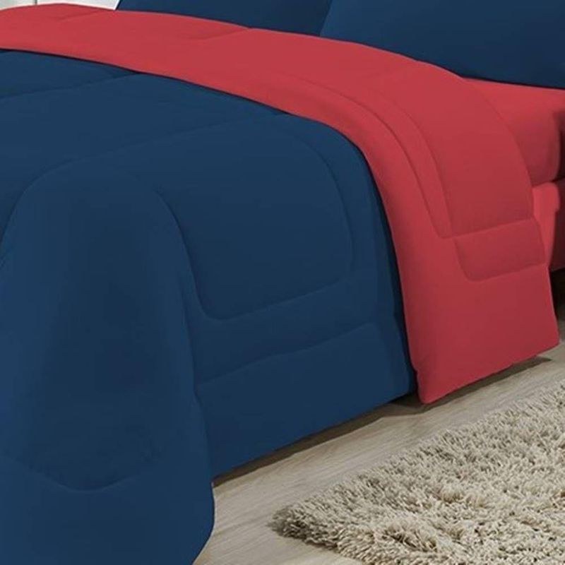 Enchimento 100% Poliéster (120 Gramas) Marca: Enxovais Davy | Estampa: Não se Aplica | Medidas: 01 Edredom Queen Liso 2,20m x 2,40m | Número de Peças: Avulsa | Material: Agodão | Cor Predominante: Marinho/ Vermelho | Cama Indicada: Queen