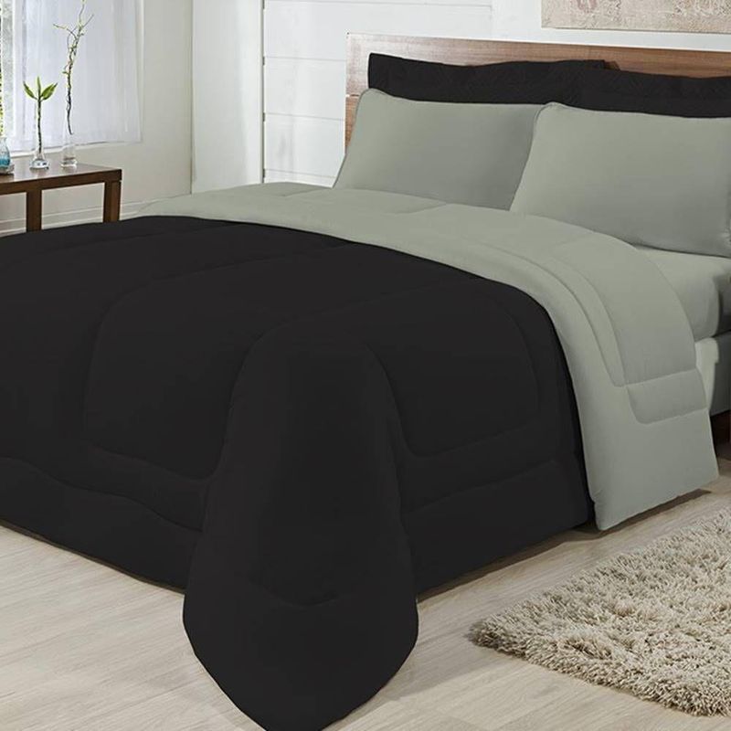 Enchimento 100% Poliéster (120 Gramas) Marca: Enxovais Davy | Estampa: Não se Aplica | Medidas: 01 Edredom Queen Liso 2,20m x 2,40m | Número de Peças: Avulsa | Material: Agodão | Cor Predominante: Preto/ Cinza | Cama Indicada: Queen