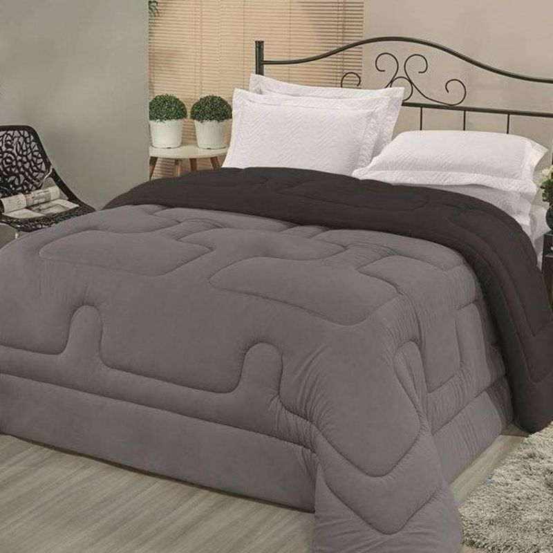 Enchimento: 100% Poliéster Marca: Enxovais Davy | Estampa: Não se Aplica | Medidas: 01 Edredom Solteiro Liso 1,60m x 2,40m | Número de Peças: Avulsa | Material: Agodão | Cor Predominante: Cinza/Preto | Cama Indicada: Solteiro