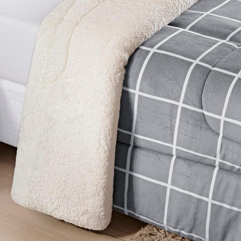 Edredom King Coberdrom Sherpa/mantinha Austin 1 Peça - Cinza