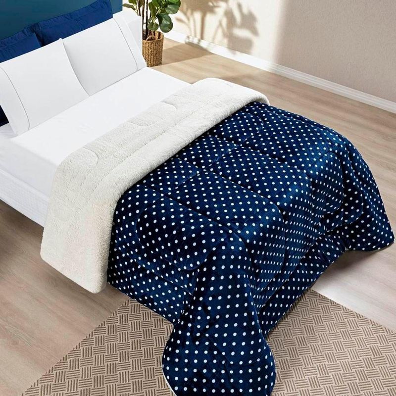 Edredom King Coberdrom Sherpa/mantinha Petit Poa 1 Peça - Marinho