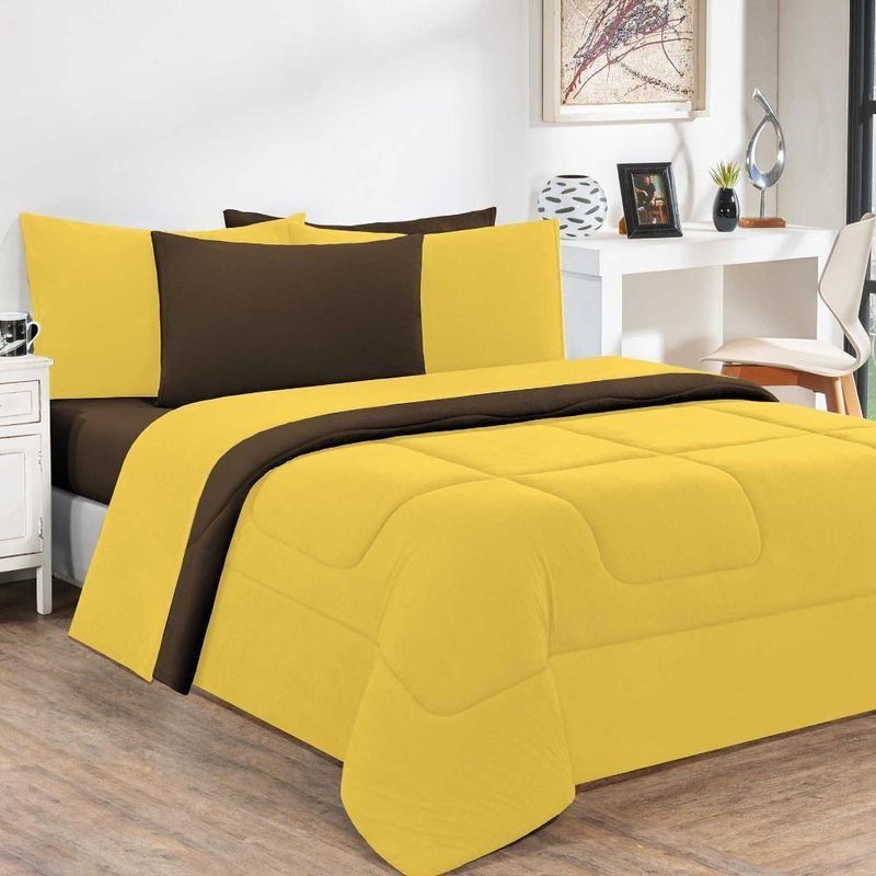 Enchimento 100% Poliéster (120 Gramas) Marca: Enxovais Davy | Estampa: Não se Aplica | Medidas: 01 Edredom Casal Dupla Face Liso 2,00m x 2,20m | Número de Peças: Avulsa | Material: Agodão | Cor Predominante: Amarelo/Marrom | Cama Indicada: Casal