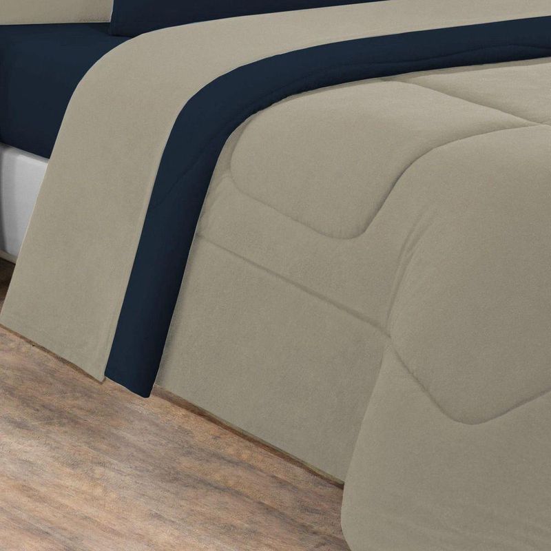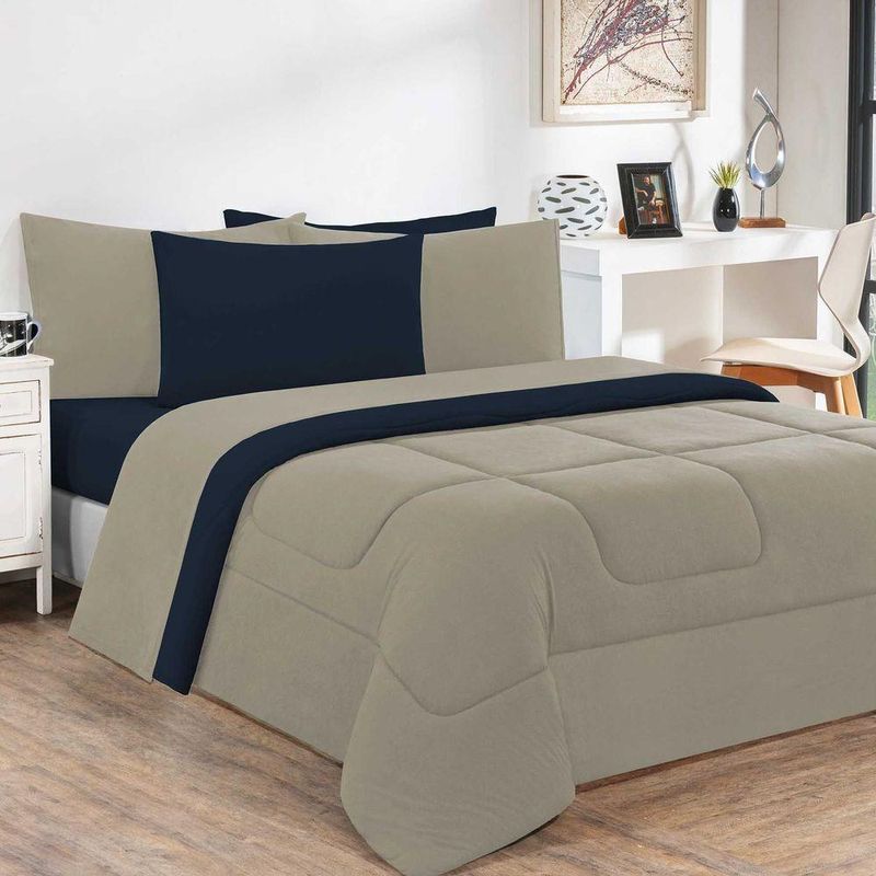 Edredom Malha 100% Algodão Gran Moratta 1 Peça Casal - Avelã/azul Marinho