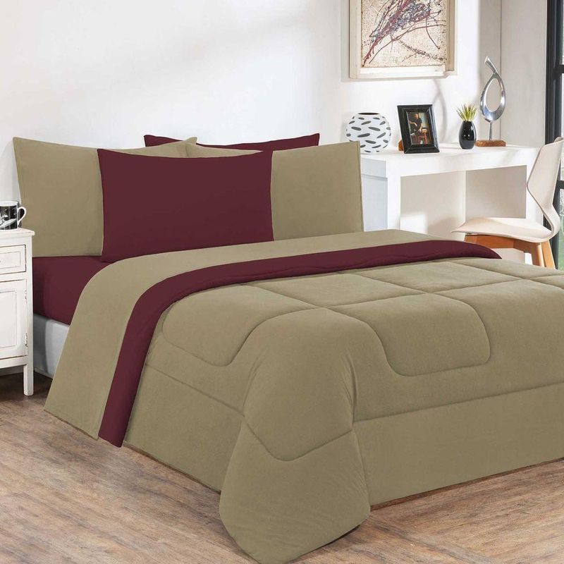 Edredom Malha 100% Algodão Gran Moratta 1 Peça Casal - Avelã/vinho