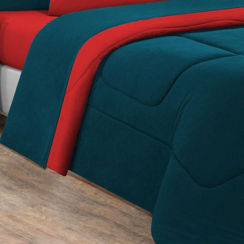 Edredom Malha 100% Algodão Gran Moratta 1 Peça Casal - Azul Petróleo/vermelho