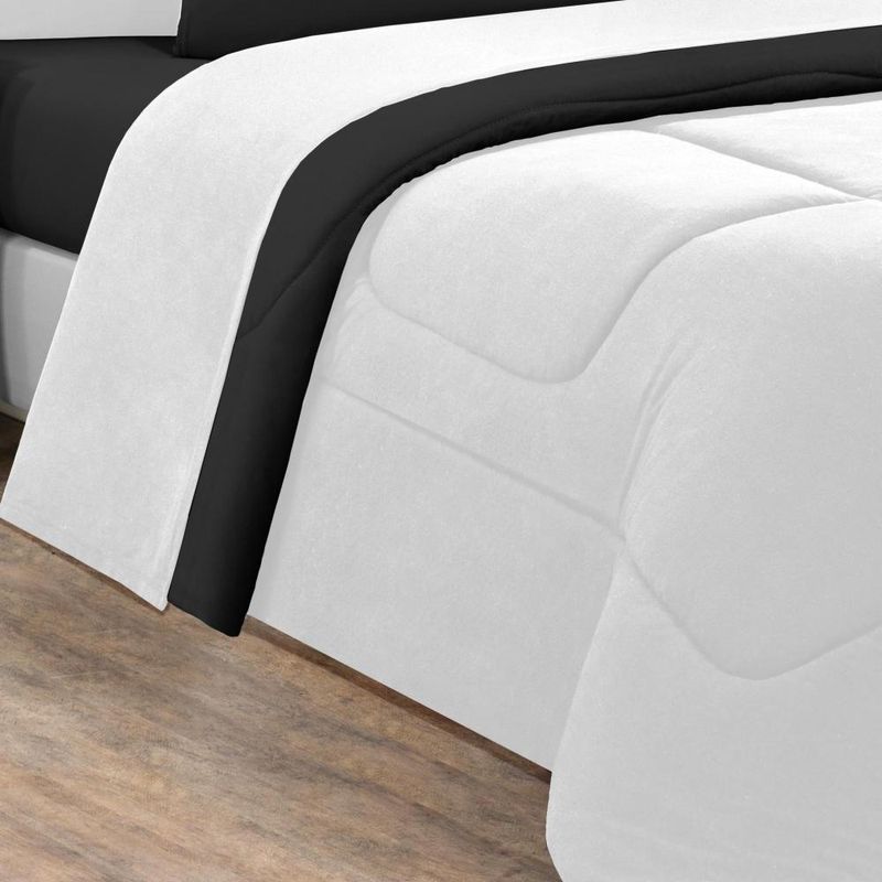 Enchimento 100% Poliéster (120 Gramas) Marca: Enxovais Davy | Estampa: Não se Aplica | Medidas: 01 Edredom Casal Dupla Face Liso 2,00m x 2,20m | Número de Peças: Avulsa | Material: Agodão | Cor Predominante: Branco/Preto | Cama Indicada: Casal