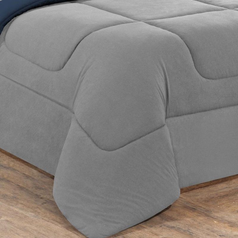 Enchimento 100% Poliéster (120 Gramas) Marca: Enxovais Davy | Estampa: Não se Aplica | Medidas: 01 Edredom King Liso 2,50m x 2,90m | Número de Peças: Avulsa | Material: Agodão | Cor Predominante: Cinza/Azul Marinho | Cama Indicada: King
