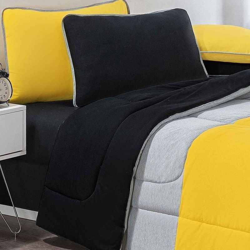 Enchimento 100% Poliéster (120 Gramas) Marca: Enxovais Davy | Estampa: Não se Aplica | Medidas: Edredom Solteiro Urbano 1,60m x 2,40m | Número de Peças: Avulsa | Material: Agodão | Cor Predominante: Amarelo/Mescla/Preto | Cama Indicada: Solteiro