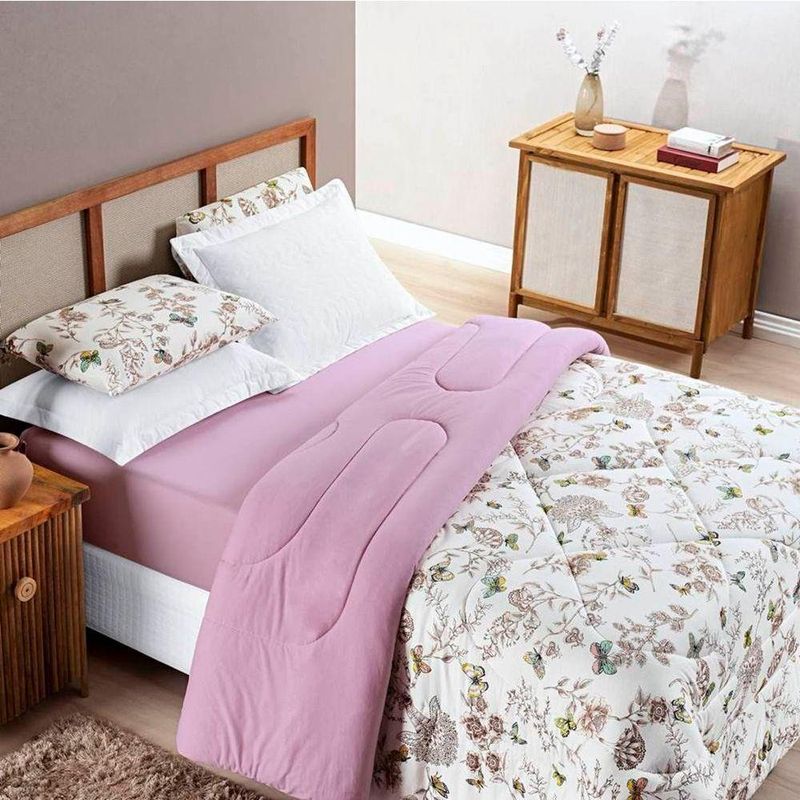 Edredom Queen Dupla Face Quality Malha 100% Algodão 1 Peça Cor Butterfly