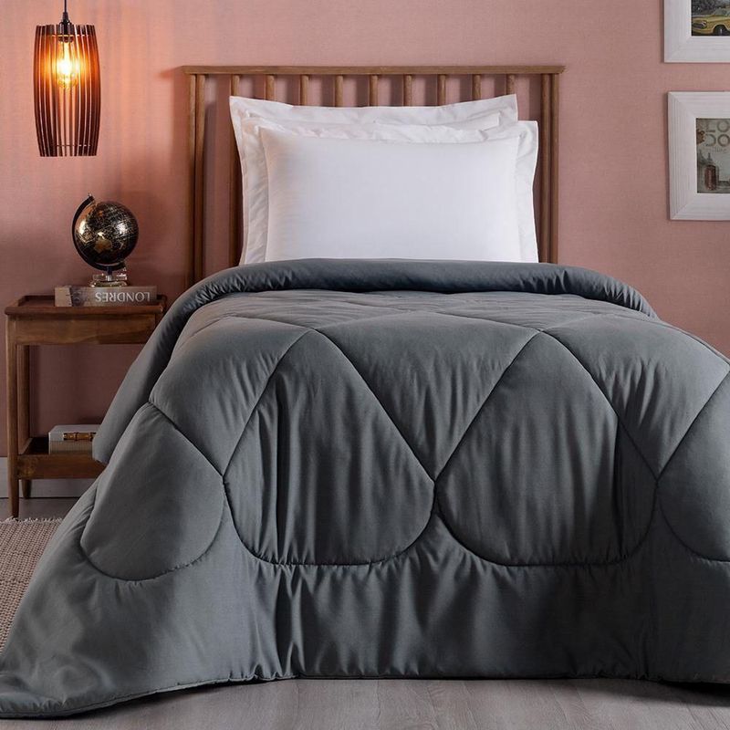 Edredom Solteiro Unique Dupla Face Micropercal 200 Fios Toque De Algodão 1 Peça - Grafite