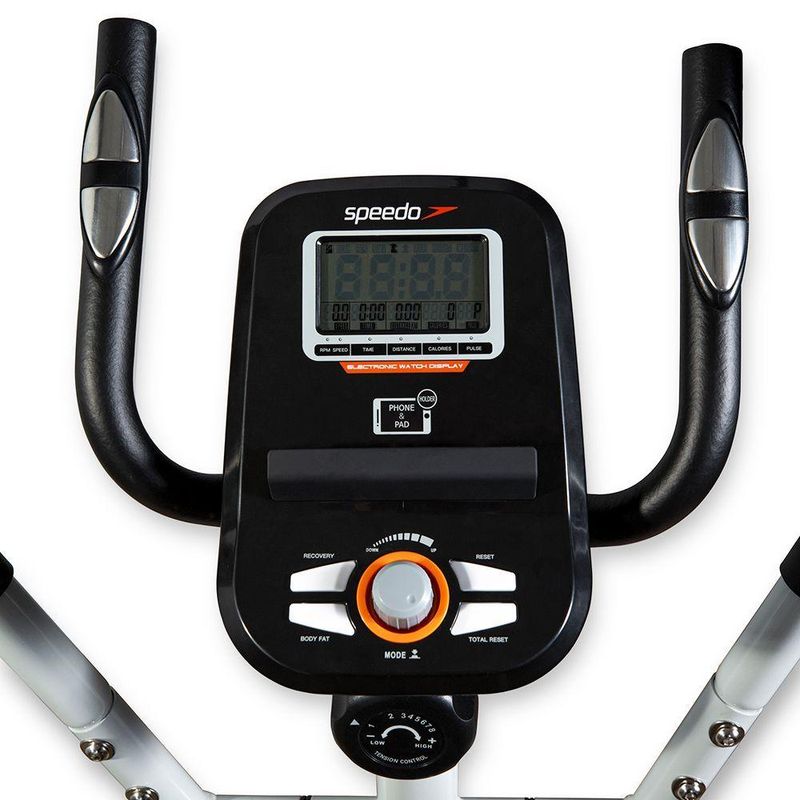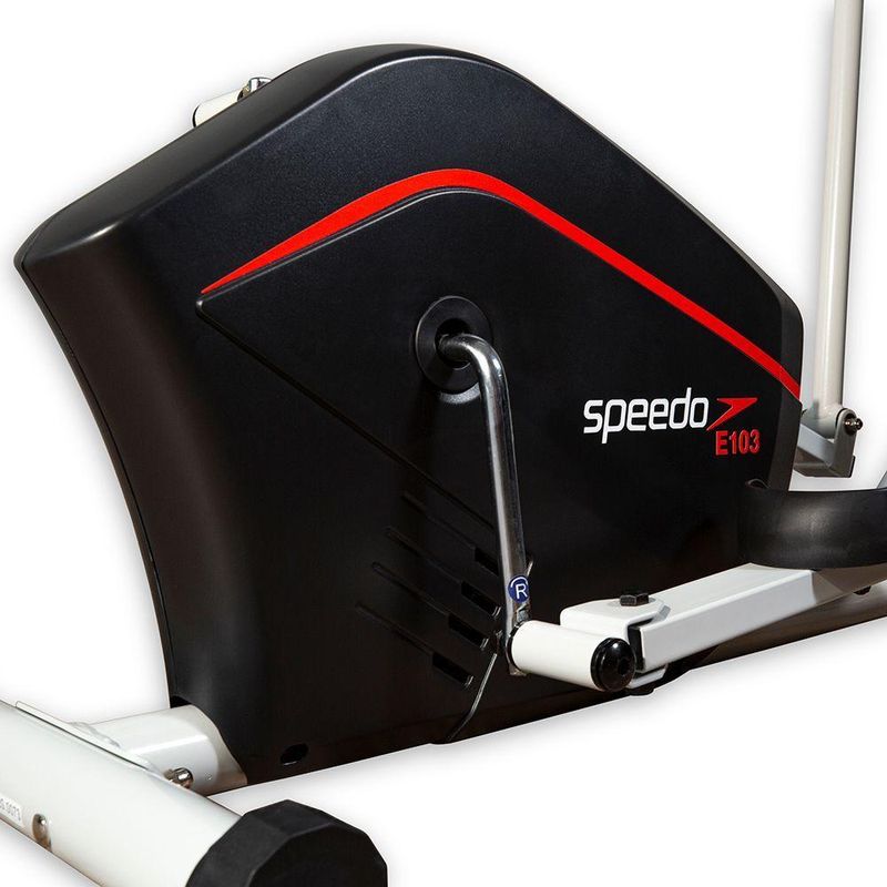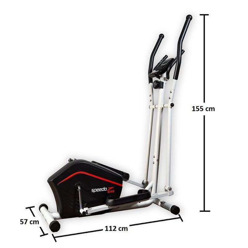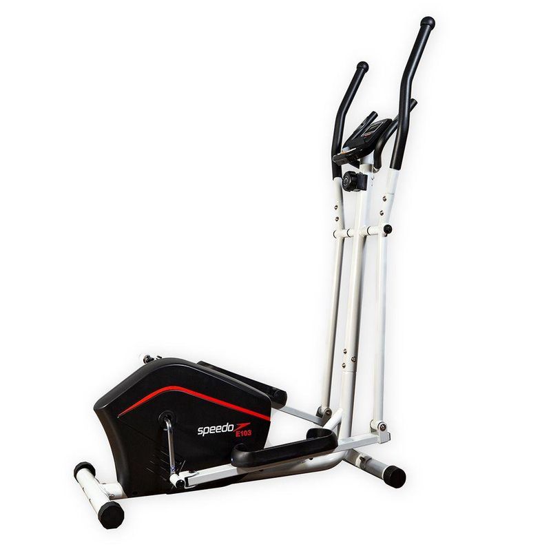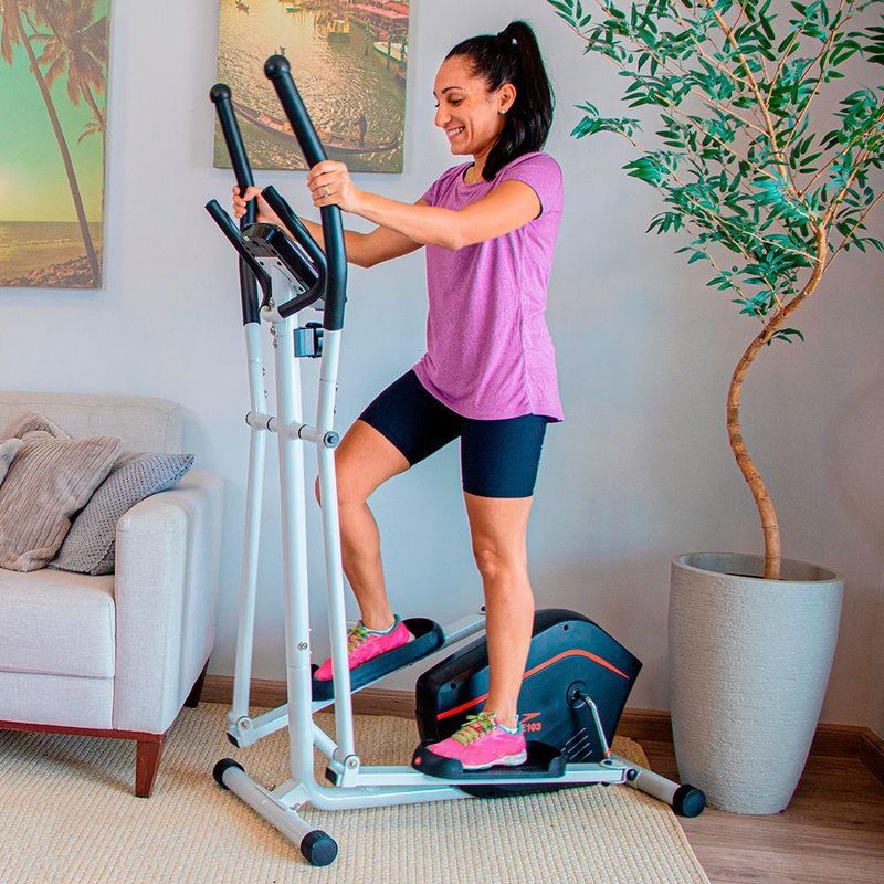 Movimente o corpo todo em um treino compacto e sem impacto com o Elíptico Speedo E103!O Elíptico Speedo E103 é um equipamento compacto e resistente para quem não abre mão de um treino para o corpo todo em casa, mesmo com pouco espaço. Ele conta com uma passada com amplitude confortável, evitando trancos e impactos.Trabalha de maneira mais intensa os membros inferiores, enquanto movimenta os membros inferiores, auxiliando também na queima calórica e na melhora do condicionamento cardiorrespiratório.DestaquesPainel completoCom painel LCD intuitivo, acompanhe as principais informações de seu treino, como: tempo, distância, calorias, velocidade e batimentos cardíacos.Suporte para celularMaratone a sua série preferida, escute aquela música que te motiva e mantenha-se conectado enquanto treina com o suporte para tablet/smartphone.Passada confortável e sem trancosCom uma passada de 35 cm com amplitude confortável, o E103 possui um movimento homogêneo, sem trancos e sem impacto.Resistência magnéticaCom 8 níveis de resistência magnética, o E103 permite que você varie a intensidade do seu treino com apenas 1 giro.Pra quem é o Aparelho Elíptico Speedo E103?O E103 é ideal para quem busca um equipamento compacto, que trabalha o corpo todo e possui um movimento sem impacto. Ideal para todos os níveis de prática, é um ótimo contraponto para treinos de musculação e corrida.Ficha técnica:Modelo: E103Marca: SpeedoUtilização: uso residencialPassada: 35 cmRoda de inércia: 4 kgResistência: 8 níveis de resistência magnéticaPainel: LCDInfos Painel: tempo, distância, calorias, velocidade e batimentos cardíacosBatimento Cardíaco: Hand GripAjuste de altura: banco com ajuste verticalDetalhes do pedal: texturizado com cinta firma péRodinhas para transporte: simAlimentação: Painel - 2 pilhas AAPeso máximo do usuário: 120 kgAltura máxima do usuário: 172 cmMedidas: 112 x 57 x 155 cm (CxLxA)Peso do produto: 30 kgMedidas da embalagem: 108 x 32 x 57 cm (CxLxA)Peso do produto na embalagem: 32 kgItens inclusos: 1 aparelho elíptico E103, 1 kit de ferramentas para montagem, 1 manual de instruções.Garantia: 2 anos para estrutura do equipamento; 1 ano demais partes (exceto peças de desgaste natural); 3 meses para peças de desgaste natural.Não trabalhe no limite máximo do seu equipamento, assim terá um desgaste precoce! Ao escolher seu equipamento, sempre leve em consideração uma margem entre seu peso e o peso limite do equipamento (cerca de 20%). Imagine você andando com seu carro em velocidade máxima e o porta malas lotado todos os dias.O Equipamento vem semi desmontado na caixa, para montá-lo você pode seguir o passo a passo do manual, ou pode entrar em contato com a gente para indicarmos uma assistência técnica pertinho de você!Caso necessário, oferecemos assistência técnica especializada em todo o Brasil!FAQ:Pergunta: A montagem é realizada na entrega ou por conta do cliente?Resposta: A montagem pode ser realizada pelo próprio cliente ou ele pode entrar em contato com a gente para a contratação de um técnico especializado. A montagem do equipamento é bem simples.Pergunta: É necessário o uso de energia elétrica?Resposta: Não, o painel é alimentado por pilhas AA.Pergunta: De que material ele é feito?Resposta: O elíptico é produzido em ferro, com pintura eletrostática