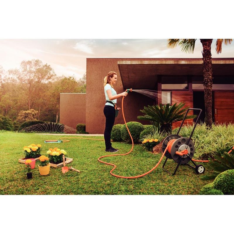 Capacidade de armazenamento de até 55 metros de mangueira de 1/2"