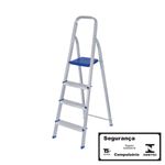 Para realizar aqueles consertos rápidos em casa com muita segurança, nada melhor do que ter uma escada que propicie conforto e que mantenha você firme no momento da utilização. Por isso a Mor elaborou para você uma linha de escadas completamente confiável, desenvolvidas com as melhores e mais seguras peças. Dobrável e fácil de guardar, a Escada de Alumínio 4 Degraus é ideal para pequenos consertos e para alcançar lugares mais elevados no uso doméstico. Este modelo possui quatro degraus com estrutura e chapas em alumínio, material super leve, durável (mesmo em áreas litorâneas!) e com peças plásticas em polipropileno de alta resistência. Além disso, seus pés antiderrapantes e travamento automático na plataforma superior garantem maior estabilidade para suportar até 120 Kg. As Escadas de alumínio Mor são fabricadas de acordo com a nova portaria do INMETRO N° 219, de 06 de maio de 2021, o que garante a certeza de um excelente produto. Possuem três anos de garantia.