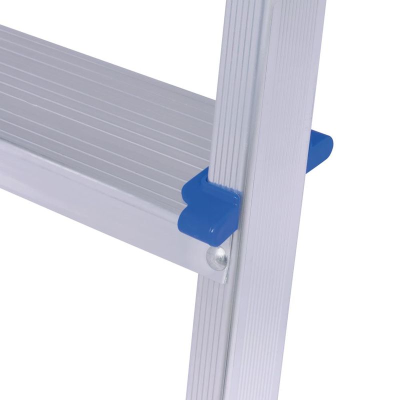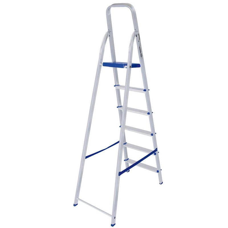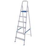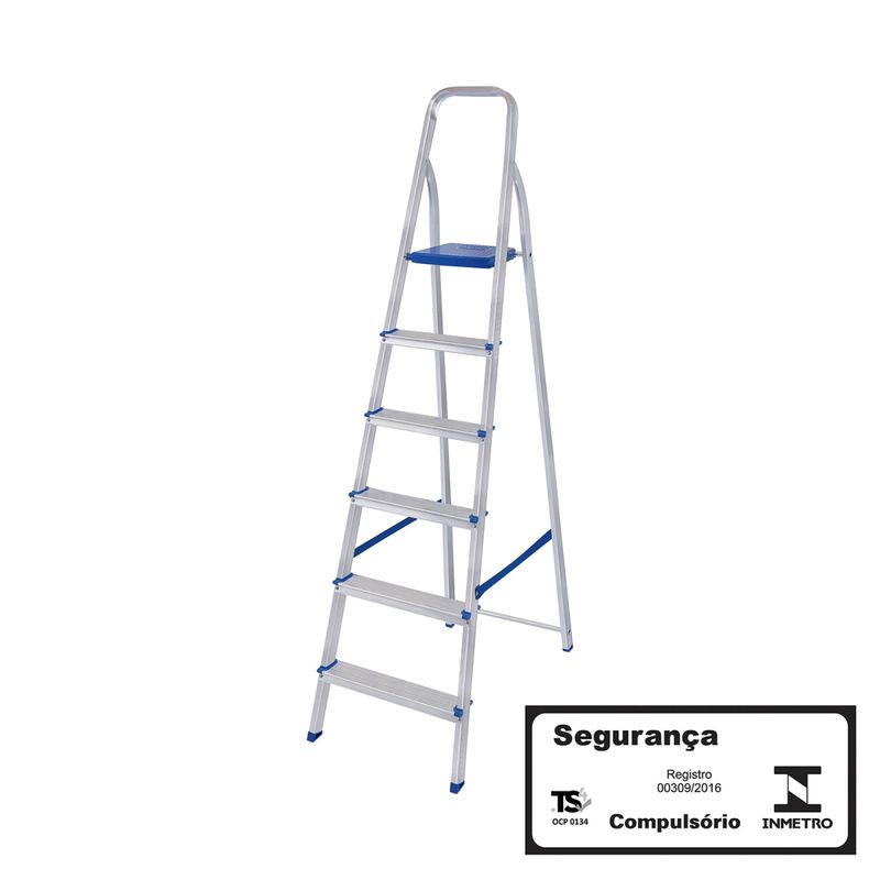 Para realizar consertos e manutenção doméstica com segurança é preciso ter uma escada que mantenha você firme no momento da utilização. Por isso a Mor elaborou a Escada de Alumínio 6 Degraus, ideal para pequenos reparos e para alcançar lugares mais elevados em sua casa, além de ser dobrável e fácil de guardar. Possui estrutura em tubo retangular e chapas em alumínio, material super leve, durável (mesmo em áreas litorâneas!) e peças plásticas em polipropileno de alta resistência. Além disso, seus pés antiderrapantes e travamento automático na plataforma superior garantem maior estabilidade para suportar até 120 Kg. As Escadas de alumínio Mor são fabricadas de acordo com a nova portaria do INMETRO N° 219, de 06 de maio de 2021, o que garante a certeza de um excelente produto. Possuem três anos de garantia.