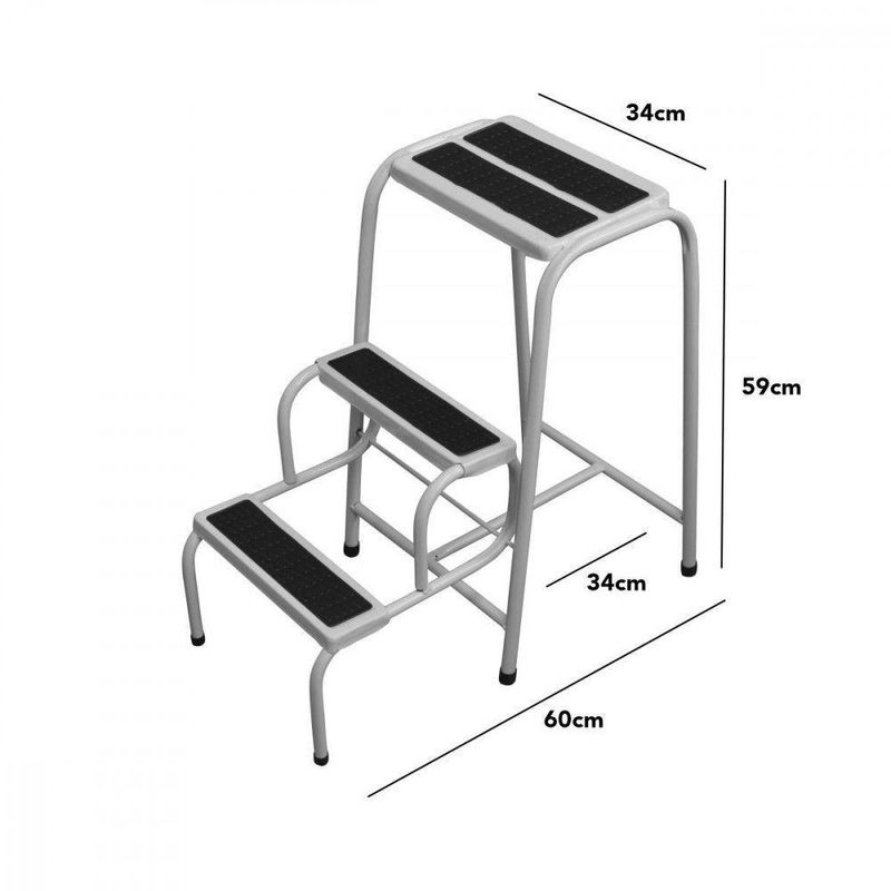 Escada Banqueta Dobrável 3 Degraus Antiderrapante Reforçada útil Forte Branco Utilaço Branco