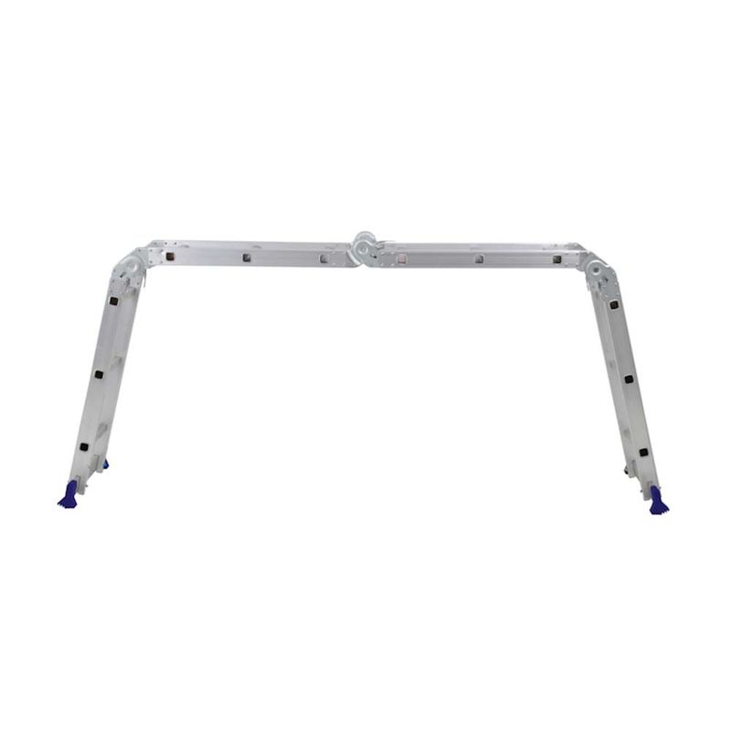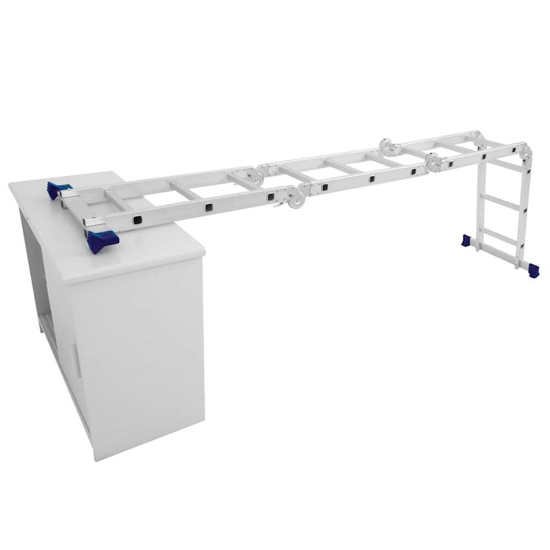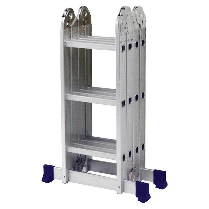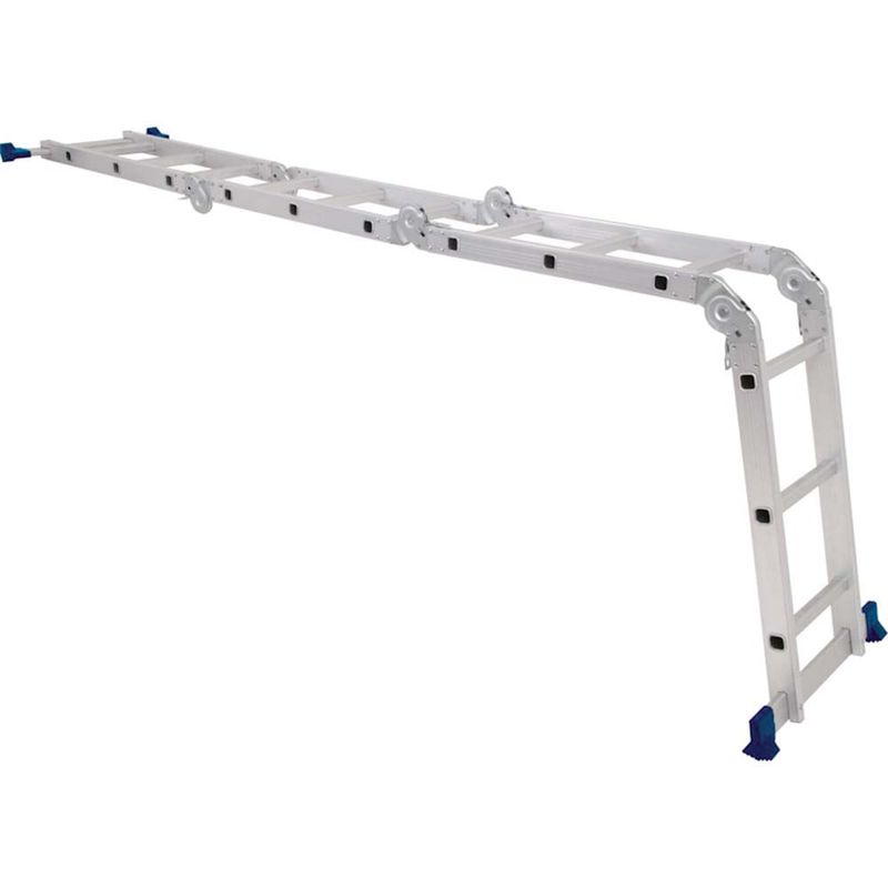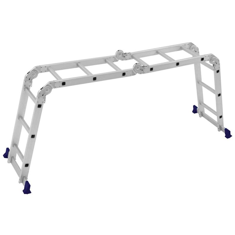 A Escada de Alumínio Multifuncional 4x3 com Plataforma vai te impressionar! São oito formas de utilização em um só produto. Seu grande diferencial são suas chapas de aço que se encaixam servindo como plataforma, possibilitando utilizar a escada como andaime. Super resistente, suporta até 150 Kg. Possui catracas com excelente qualidade, travamento automático na extensão e ponteiras emborrachadas abauladas para melhor aderência no piso, garantindo segurança total durante seu uso. Estável e versátil, a Escada Multifuncional ainda é fácil de utilizar, em menos de um minuto você pode trocar a posição alcançando superfícies mais altas e lugares de difícil acesso com agilidade. Possui 4 partes de 3 degraus com ranhuras antiderrapantes, alcançando a altura de 3,36m quando totalmente estendida. Sua estrutura é de alumínio, compacta e leve para manuseio, com dobradiças em aço. Por ser totalmente dobrável, ao fechá-la seu volume diminui ocupando pouquíssimo espaço. Além disso as escadas Mor são fabricadas de acordo com a norma europeia EM-131, o que garante a certeza de um excelente produto. É a ferramenta que você precisava para as tarefas do dia a dia e para uso profissional.
