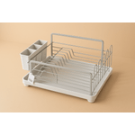 Com dimensões generosas de 18,8x36,8x47,2cm, o escorredor acomoda pratos, copos, talheres e outros utensílios com eficiência, otimizando o espaço da bancada e facilitando a rotina. Seu design inteligente permite o escoamento da água, mantendo a pia sempre organizada e seca.