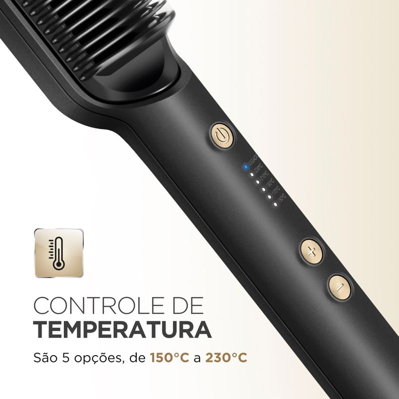 CONTROLE DE TEMPERATURA: São 5 opções de 150°C a 230°C, para um alisamento perfeito aos diferentes tipos de cabelo.