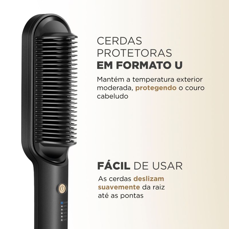 FÁCIL E PRÁTICO DE USAR: Basta selecionar a temperatura desejada, aguardar o aquecimento e deslizar a escova pela mecha de cabelo desde a raiz até as pontas. O liso é instantâneo!