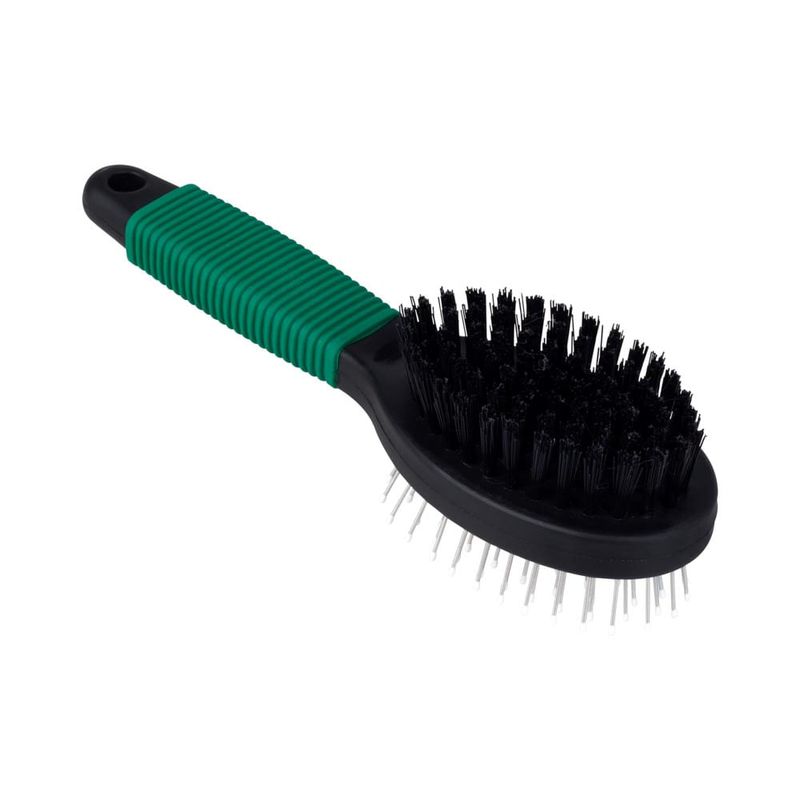 A Escova Dupla é um ítem indispensável para manter a pelagem dos pets sempre bem cuidada e saudável. Multifuncional, oferece duas faces distintas, mas que se complementam e trabalham em conjunto. De um lado, cerdas ideais para desembaraçar os pelos, removendo nós e evitando embaraços. Do outro, uma escova para finalizar a escovação, de modo a deixar o pelo macio, brilhante e alinhado.O produto também é de grande ajuda com a renovação da pelagem, para o surgimento de fios novos e mais firmes. Indicada para todos os tipos de pelos, sejam curtos, médios ou longos. A escova pode ser utilizada em cães e gatos.