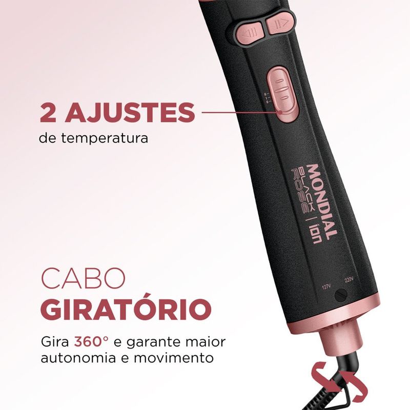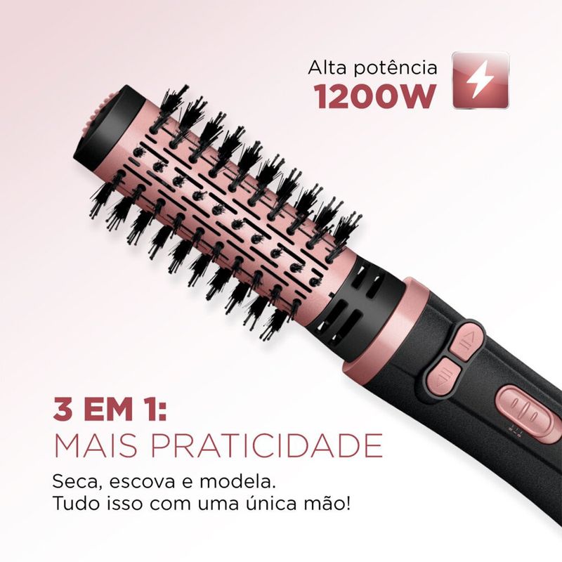 A Escova Rotativa Mondial Black Rose, 3 em 1, 1200 W, 2 temperaturas ERB01 deixa seus cabelos ainda mais bonitos e cuidados.
