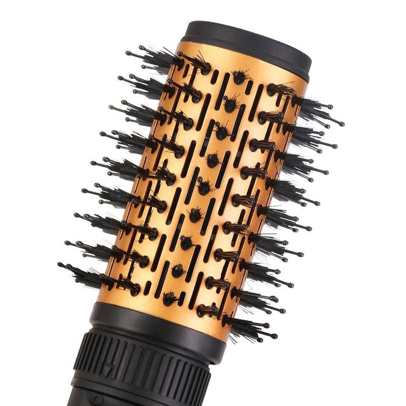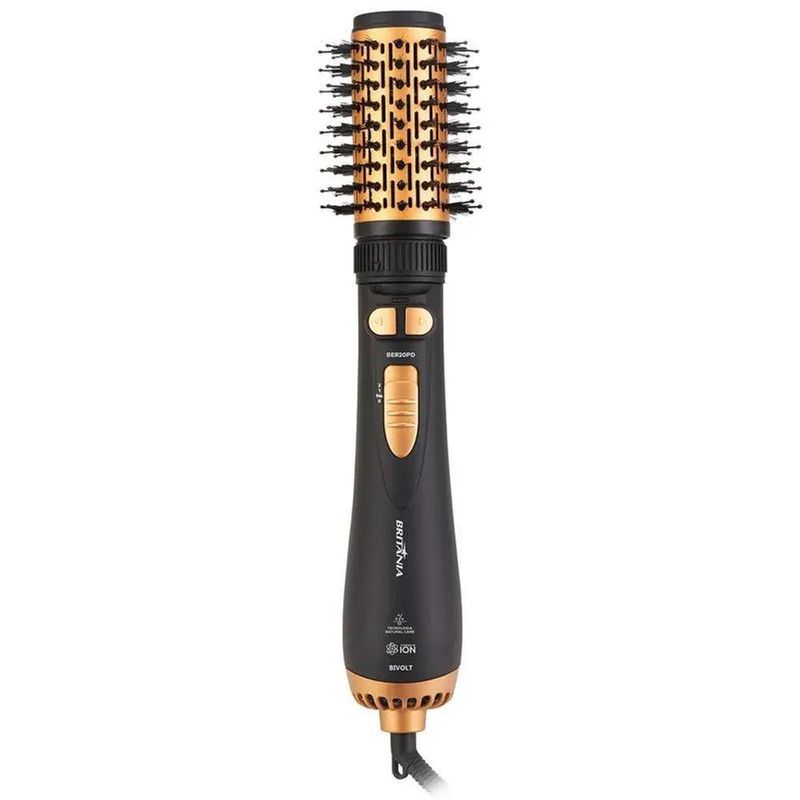 Mais saúde para seu cabelo e praticidade para seu dia a dia com a Escova Rotativa Britânia BER20PD 4 em 1 3 Temperaturas Bivolt.O Revestimento Gold da escova rotativa evita o ressecamento e atrito com o cabelo, pois contém nanopartículas de cerâmica e protege os fios, o que garante mais movimento, maciez e brilho.Tenha em casa a melhor escova rotativa, pois com ela você finaliza seus penteados preferidos, ao utilizar das 3 temperaturas, duas velocidades e dois sentidos de rotação.Ela é perfeita para você! A escova rotativa é 4 em 1: seca, alisa, escova e dá volume aos seus cabelos, além de ser bivolt, possui cordão giratório com 360° e de 1,80m de comprimento e alça para facilitar o armazenamento dela.Tenha a Escova Rotativa Britânia BER20PD 4 em 1 3 Temperaturas Bivolt e esteja sempre pronta para todo tipo de ocasião, com inovação e agilidade. Principais Características:- Produto bivolt