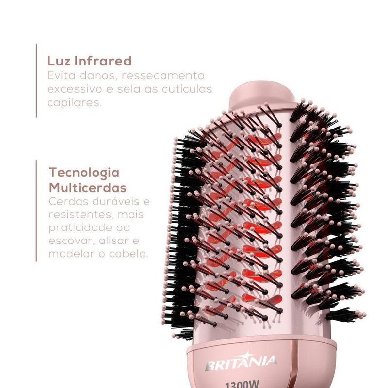 A Nova Linha de Cuidados Pessoais Viih Tube foi criada para acompanhar você em todos os momentos. Liberte a beleza que existe em você com a Escova Secadora Britânia Linha Viih Tube Bivolt 4 em 1 BES36.A tecnologia Infrared protege seus fios do calor excessivo, selando as cutículas e garantindo um cabelo brilhante, macio e livre de frizz. O revestimento em nanocerâmica cuida da saúde capilar, permitindo o uso em cabelos secos, úmidos ou molhados, sem danificar.Com a Escova Secadora 4 em 1 você pode secar, alisar, modelar e dar volume, afinal, ela se adapta a qualquer estilo e tipo de cabelo. As multicerdas facilitam o processo, oferecendo um acabamento impecável com menos esforço. Além disso, a função bivolt e as opções de 3 temperaturas e 2 velocidades tornam seu dia a dia mais prático, seja em casa ou durante viagens.Com a Escova Secadora Britânia Linha Viih Tube Bivolt 1300W, você tem o controle total sobre o seu visual. Sinta-se linda e confiante, expressando sua personalidade através do seu cabelo. Adquira agora a sua Escova Secadora e descubra o poder de ter o cabelo que você sempre quis!Principais Características:- 3 temperaturas disponíveis