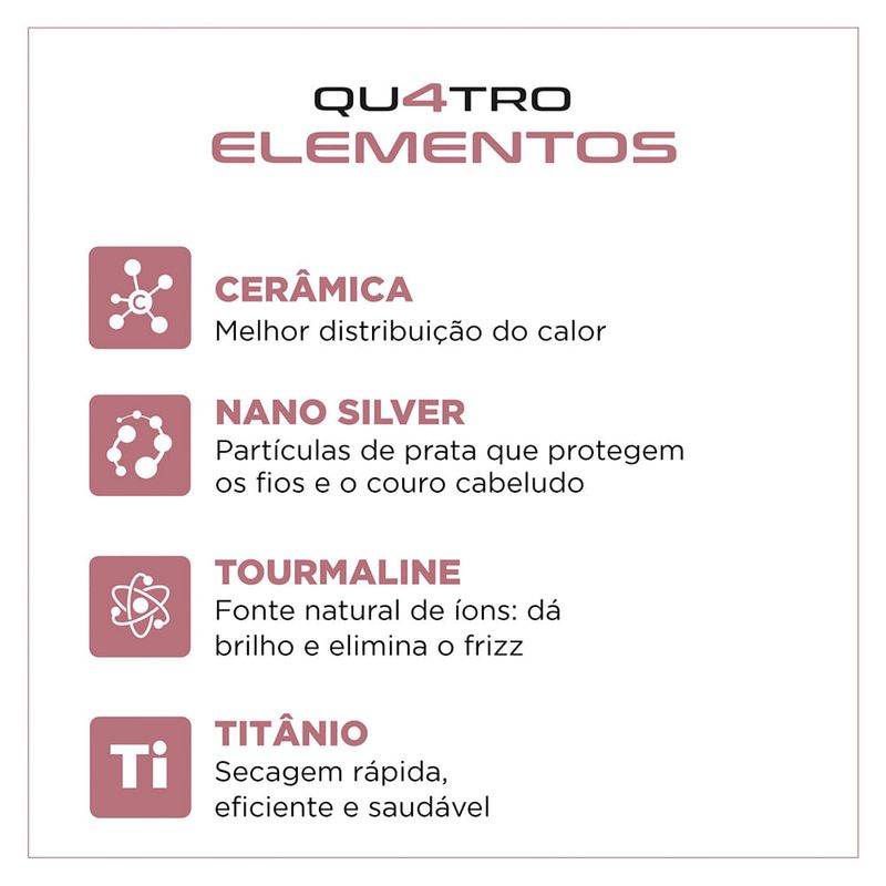 Titânio: Tecnologia que age na umidade dos cabelos e reduz o tempo de secagem, além de eliminar o efeito frizz.