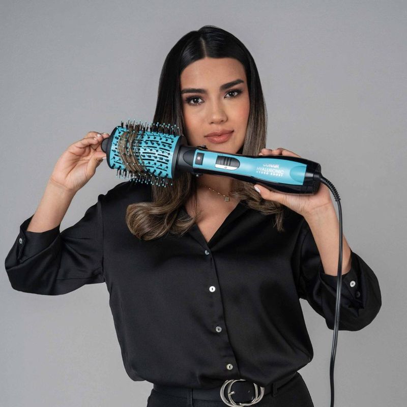 Ela combina a praticidade de uma escova secadora com a inovadora e exclusiva tecnologia Hyaluronic, que libera nanopartículas de ácido hialurônico com ação hidratante e preenchedora, ativadas durante o processo de modelagem. O resultado? Mais hidratação, mais proteção e mais brilho para cabelos mais fortes e cheios de vida! E graças ao seu gerador de íons, elimina o frizz na hora!
