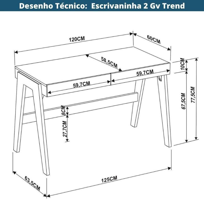 Escrivaninha 2 Gavetas Trend Artesano 125 Cm (largura) Em Mdp Hanover E Off White