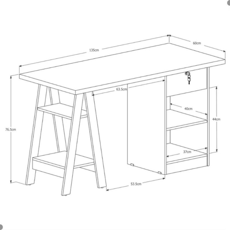 A Escrivaninha é um produto muito bem feito e de excelente qualidade que vai te auxiliar muito na hora do seu trabalho ou estudo.Proporciona ampla capacidade de organização para você colocar seu , livros,lápis,canetas e materiais diversos que estarão em uma altura confortável.Feito em MDF, possui uma gavetae dois nichos.Excelente escolha, sendo muito útil para estudo,trabalho e até lazer.Dimensão do produto:Altura:76,5 cmLargura: 135 cmProfundidade: 60 cmInformações do produto:Cor: BrancoGavetas: Sim (1)Portas: NãoPrateleiras: Sim (2)Nichos: Sim (2)Possui chave: SimPassa fio: NãoPés: NãoFormato: RetangularMaterial: MDFItens inclusos:- 01 Escrivaninha.- Kit completo para montagem, manual detalhado de instruções para montagem.Garantia:3 meses contra de fabricação.Informações complementares:- Fotos meramente ilustrativas do produto no ambiente.- Os objetos que ambientam as fotos não acompanham o produto;- Verificar descrição e tamanho do produto antes da compra.- Avaliar a mercadoria no ato do e recusar em caso de divergência ou .- Mantenha as informações de e de atualizados para entrarmos em caso necessário.- Limpar com flanela ou pano macio seco, não utilizar produtos abrasivos, desengordurantes, álcool ou solvente. Não expor o produto diretamente à luz solar e à umidade.* Sugerimos a contratação de um montador para a montagem do produto. Não nos responsabilizamos por causadas no ato da montagem.* Não nos responsabilizamos pela montagem e desmontagem do produto no ato da e , assim como os custos gerados nestas situações.* A transportadora entregará o produto no andar térreo do de .* Não nos responsabilizamos por subir escadas, corredores e elevadores ou por guincho em apartamentos. PESO PRODUTO COM EMBALAGEM (KG): 25,6 | ALTURA DO PRODUTO (CM): 76 | LARGURA DO PRODUTO (CM): 135 | COMPRIMENTO PRODUTO COM EMBALAGEM (CM): 141 | CONTEÚDO DA EMBALAGEM: 1 Escrivaninha | MODELO: Escrivaninha Juan Branco | QUANTIDADE DE GAVETAS: 0 | PRODUTO PRECISA DE MONTAGEM?: Sim, a montagem é simples mas sugerimos a contratação do nosso de montagem (para os CEPs em que o está disponível) ou de algum experiente de sua preferência | MATERIAL PARA FILTRO: MDF | CORES DO PRODUTO (FILTRO DE CORES): Branco | COMPRIMENTO DO PRODUTO (CM): 60 | MATERIAL PRINCIPAL: MDF | ESTADO DE ORIGEM: SP | PESO DO PRODUTO (KG): 24,8 | INSTRUÇÕES/CUIDADOS: Limpar com pano macio e seco, não utilizar produtos abrasivos. | COR PREDOMINANTE: Branco | ALTURA DO PRODUTO COM EMBALAGEM (CM): 10 | LARGURA PRODUTO COM EMBALAGEM (CM): 63 | DESCRIÇÃO DO TAMANHO: Altura: 135 cm Largura: 77 cm Comprimento: 60 cm