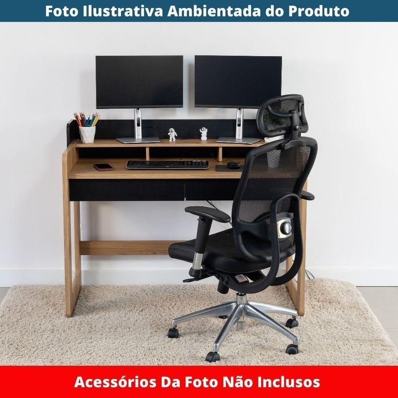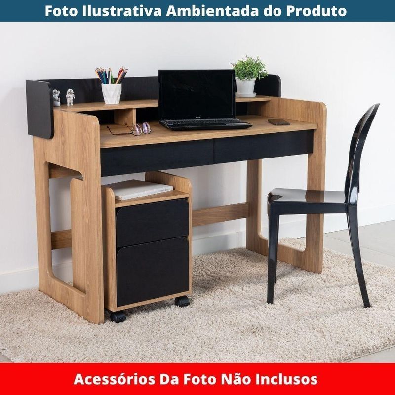 Escrivaninha Flexus Artesano 128 Cm (largura) Mdp Hanover (mel) E Nero (preto) 3 Nichos E 2 Gavetas