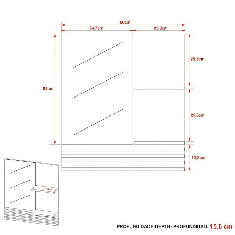 - 1 x Espelheira para Banheiro 60 cm com 2 Prateleiras SâmiaManual de MontagemAcessórios de Montagem