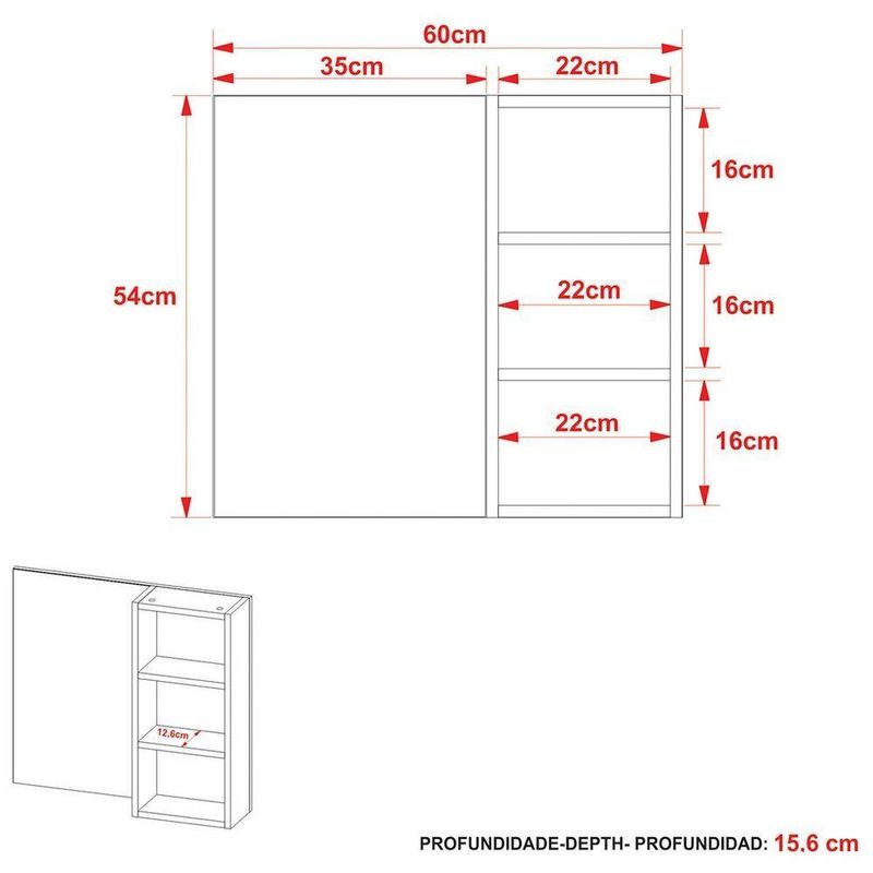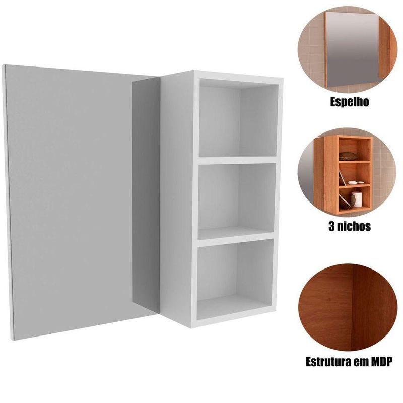 Espelheira Para Banheiro 60 Cm 3 Nichos Valente Branco