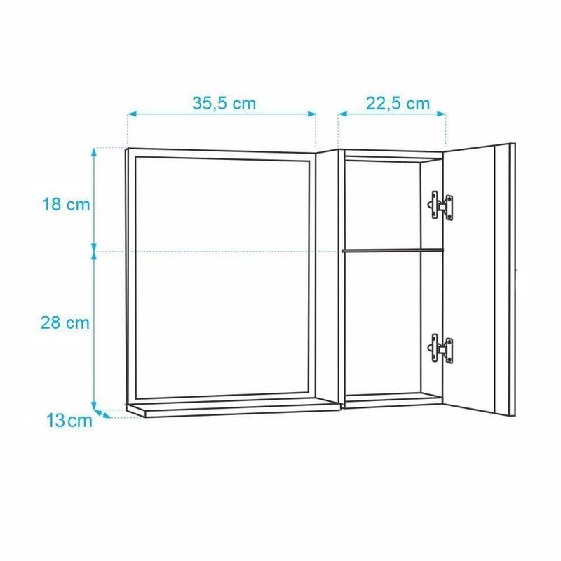 Obs: a colocação dele na parede é por conta do cliente, mas é bem fácil de fazer, basta uma furadeira, régua e lápis para marcar o local de instalação. Basta colocar os dois parafusos na parede, depois encaixar o armário com espelho neles (tem 2 suportes metálicos atrás do armário, para encaixar nos parafusos).