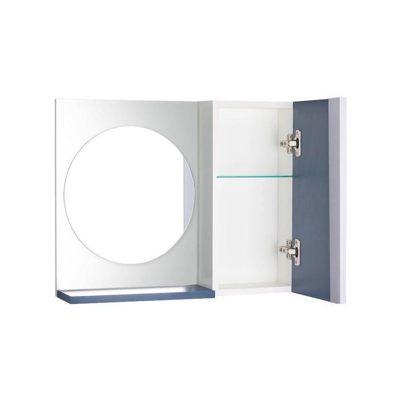 Espelho Redondo para Banheiro com Armário Azul com Barra Vertical