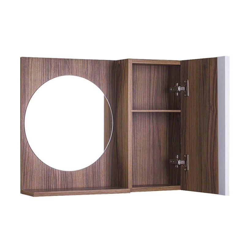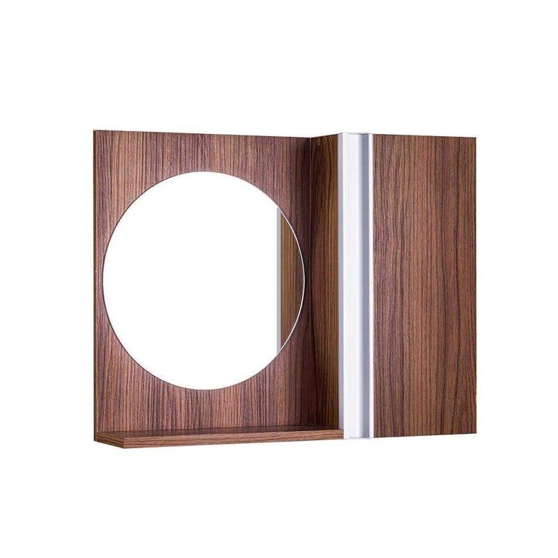 Espelho Redondo para Banheiro com Armário Nogal com Barra Vertical