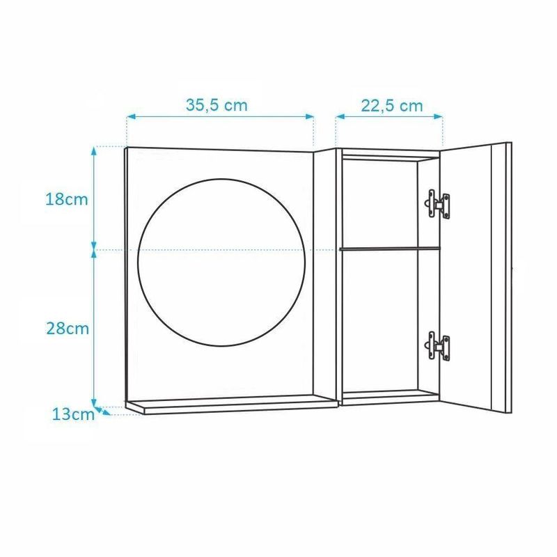 Espelho Redondo para Banheiro com Armário Nogal com Barra Vertical. Já vem montado, pronto para colocar na parede. É só abrir a caixa e instalar em seu banheiro. Acompanha 2 parafusos com buchas para instalar na parede.