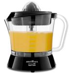 São 35 Watts de potência e 2 cones de diferentes tamanhos que quando pressionados com a fruta, giram para ambos os lados e extraem todo o suco da fruta. Sua Jarra possui uma super capacidade de 1,5 litros é transparente com graduação de medidas e acompanha uma peneira, perfeito para o seu dia a dia.