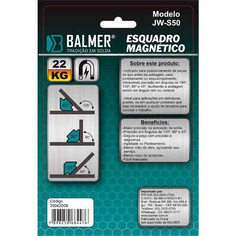 Esquadro Magnético Balmer JW-S50 para Solda