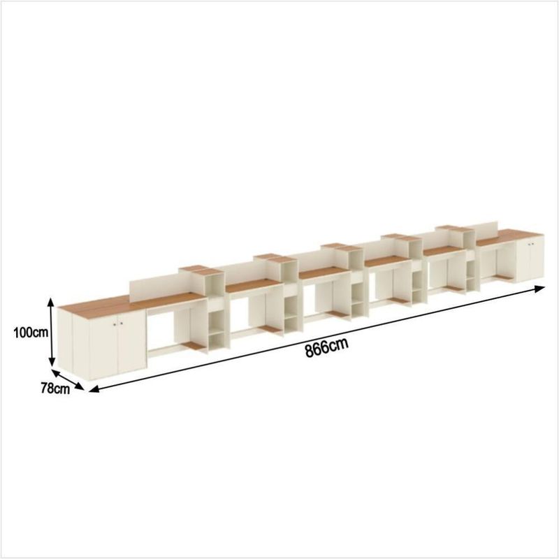 Estação De Trabalho 12 Lugares Office Tech 12 Mesas 10 Armár - Off White E Cedro Off White E Cedro