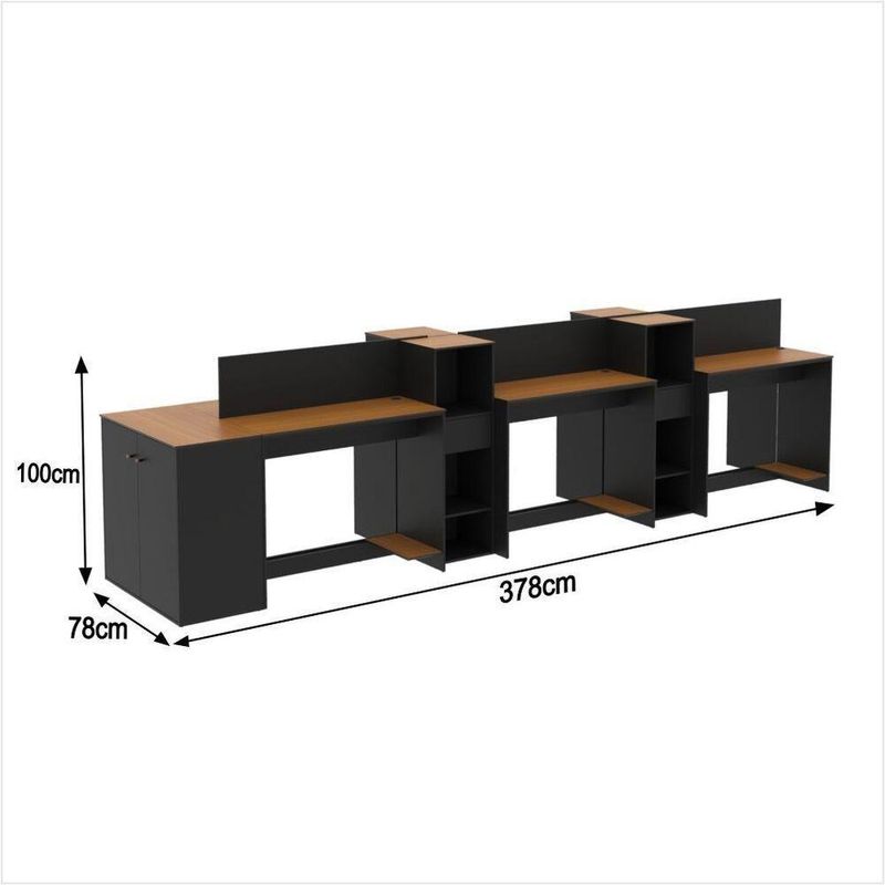 Estação De Trabalho 6 Lugares Office Tech 6 Mesas 4 Armários - Preto E Cedro Preto E Cedro