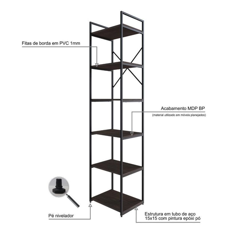 Estante Alta C/06 Prateleiras 185x45x33cm Yon Terracota/ Terracota/